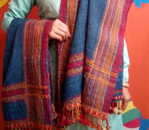 Handcrafted dupattas with unique designs.